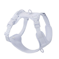White dog wearing front clip no pull dog harness vest